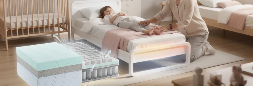 Le choix de la housse (ou coutil) contribue également à la régulation thermique. Les tissus à base de fibres naturelles (coton, bambou, Tencel) ou les mélanges techniques respirants permettent d’évacuer plus rapidement la sueur et de conserver une surface de couchage sèche. Si votre enfant a tendance à avoir chaud, privilégiez les matelas annoncés comme “climatisés” ou “respirants”, et évitez les protections de matelas entièrement plastifiées qui bloquent la ventilation. Une bonne régulation thermique améliore non seulement le confort, mais aussi la longévité du matelas 70×140 en limitant les risques de moisissures internes.